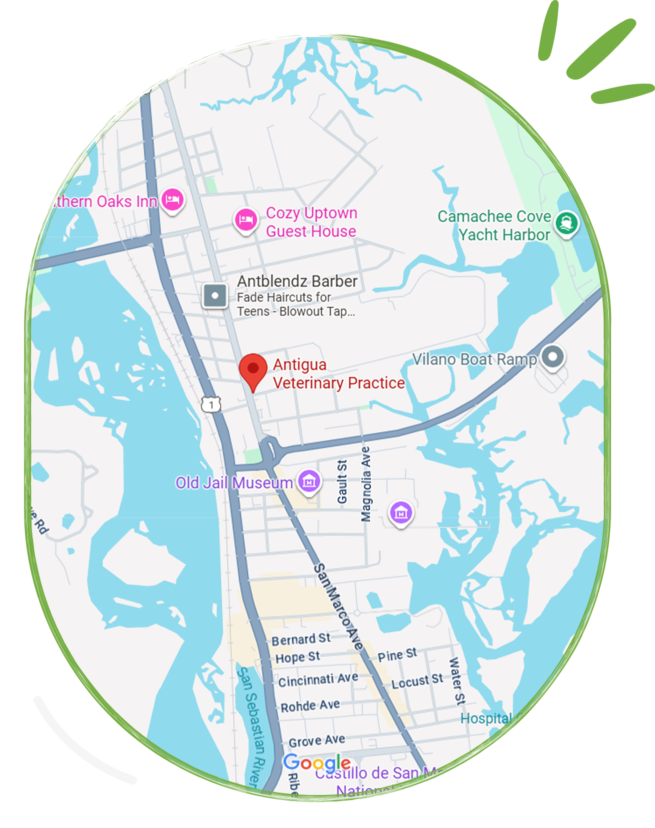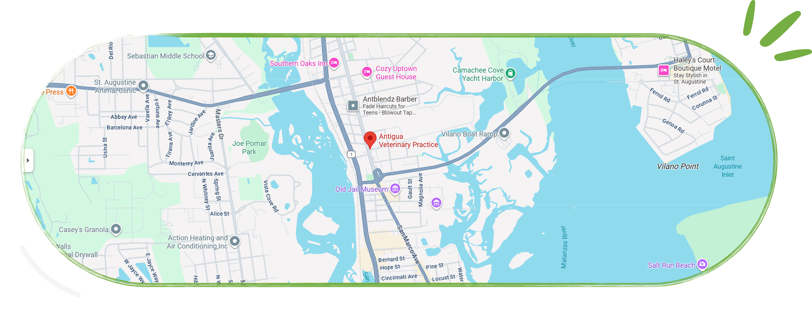 At Antigua Veterinary Practice, your pet’s health and happiness are our top priority. Since 1979, we’ve proudly served the St. Augustine community, offering state-of-the-art veterinary medicine in a comfortable, home-like setting. Our veterinarians provide compassionate, personalized care from routine checkups to advanced procedures treating every pet like family.